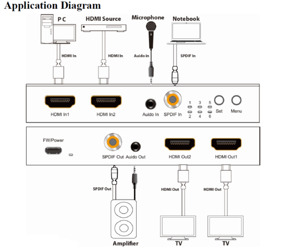 Switch HDMI 2×1 / Splitter 1×2 HDMI 2.0 con Extractor de Audio y Desescalador 4K@60Hz