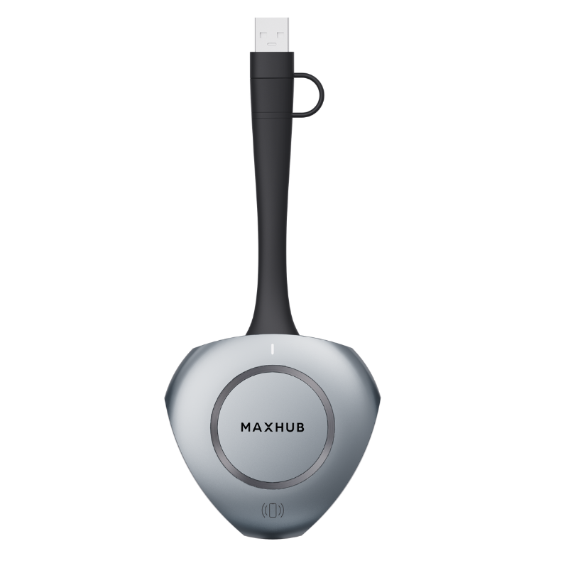 Transmisor USB inalámbrico compacto y eficiente, diseñado para integrarse con los receptores Mirroring Box MAXHUB. Este dispositivo permite compartir la pantalla de forma inmediata desde cualquier computadora compatible, sin configuraciones complejas ni necesidad de cables.